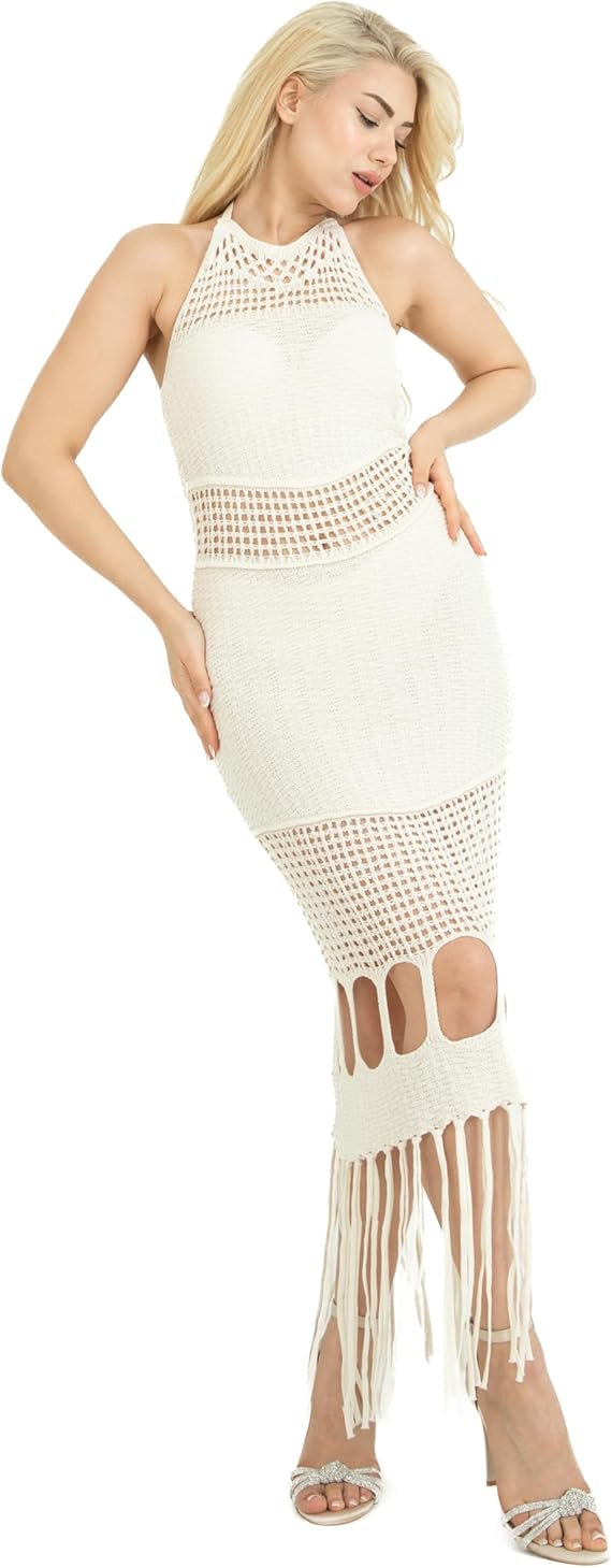 Women's Crochet Maxi Dress, Mesh Knit Swimsuit & Lace Elegance for Sexy Bodycon Swimsuit Coverup, Boho Summer