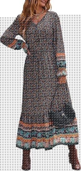 Long Sleeve Maxi Dress for Women V Neck Casual Button Down Boho Long Floral Dresses