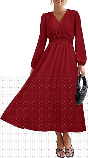 Womens Long Sleeve Maxi Dress Fall Trendy Elegant V Neck High Waist Flowy Wedding Guest Formal Long Dresses