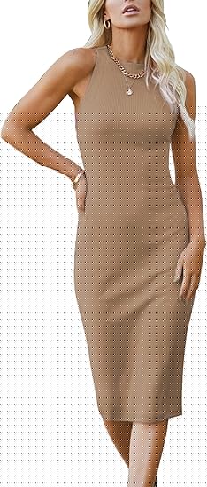 Women's Basic Bodycon Midi Dress Crewneck Sleeveless Casual Summer Tank Top Dresses