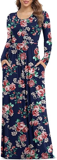 Women's Long Sleeve Loose Plain Maxi Dresses Casual Long Dresses with Pockets